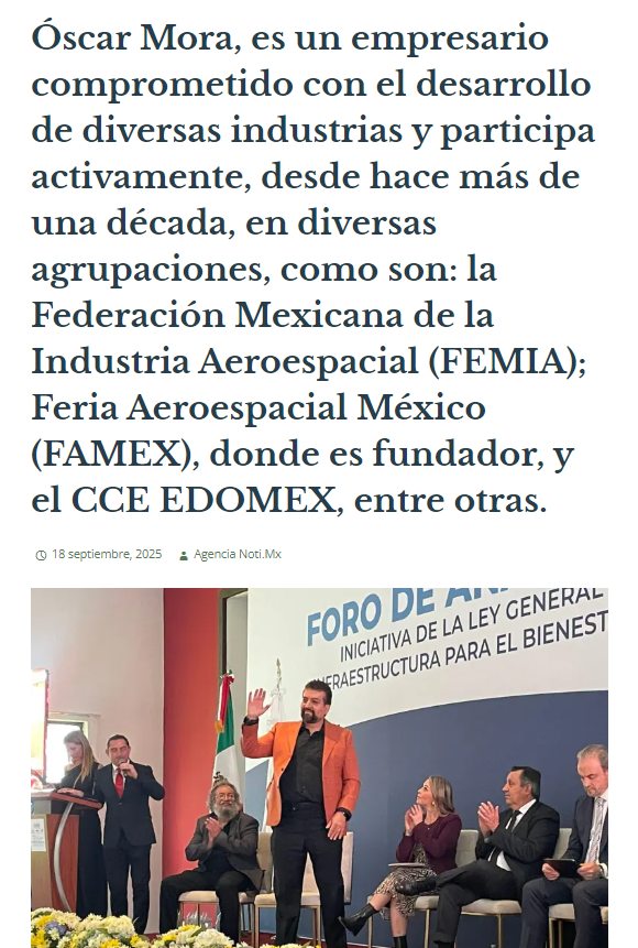 Reconocido por la Fuerza Aérea Mexicana como un referente en servicios tecnológicos, Oscar Mora continúa impulsando la innovación y el crecimiento empresarial, consolidándose como un líder influyente en la transformación digital.